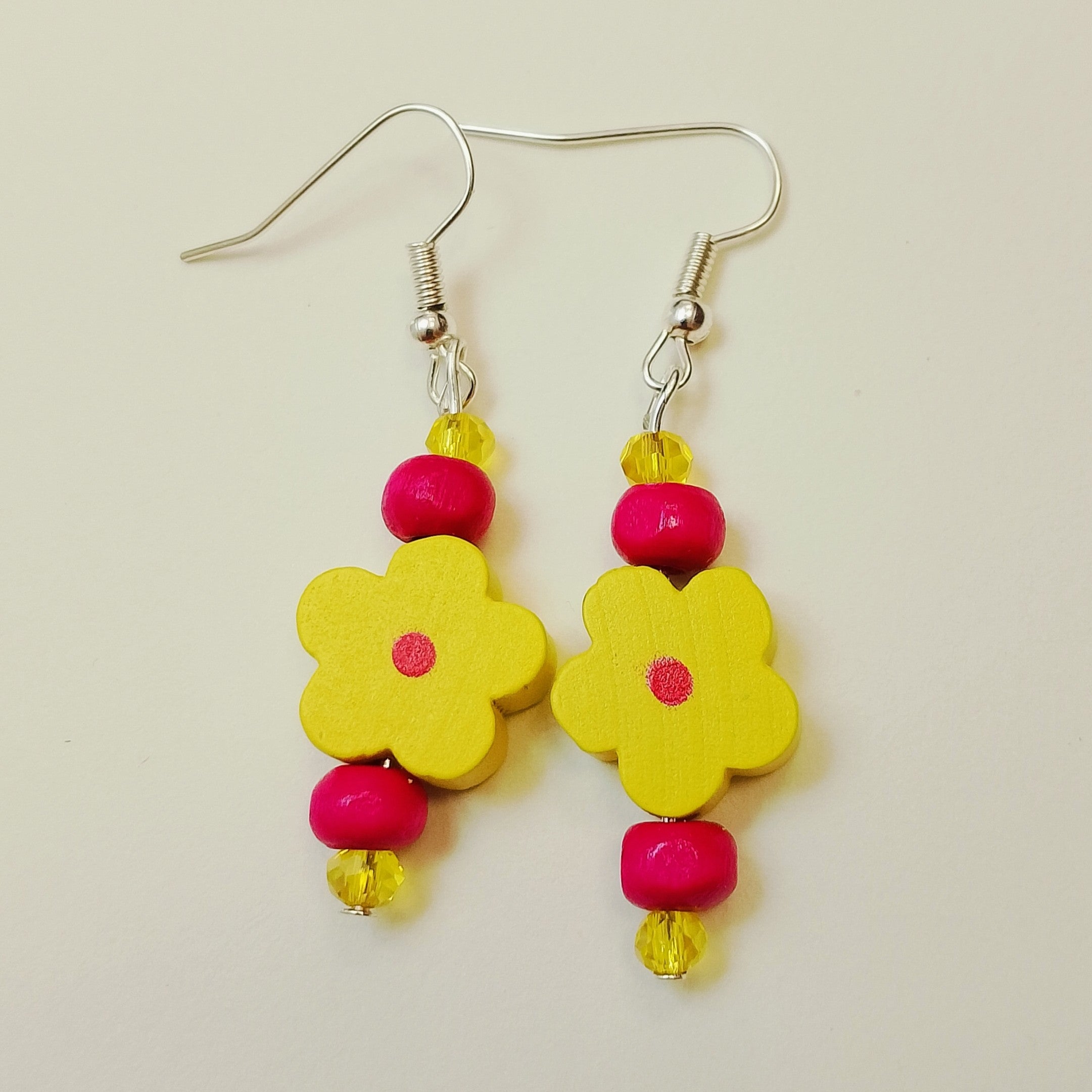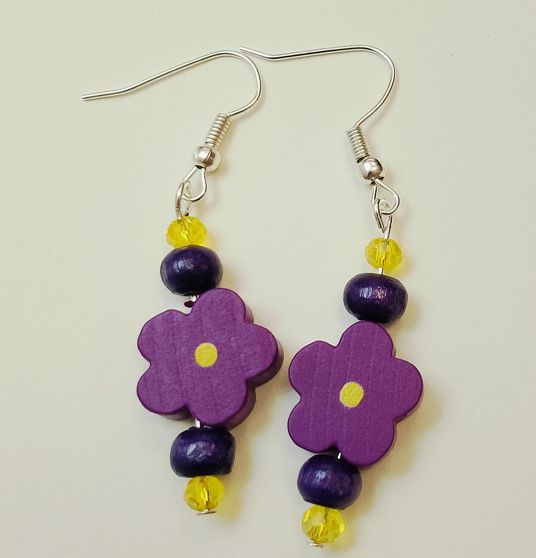 Presentamos los pendientes más coloridos de esta primavera. Son de madera, tienen forma de flor y cuentas de colores. Hay seis colores: Morado, Amarillo, Naranja, Verde, Rosa y Azul. Medidas 5 cm de largo. Son muy ligeros, ideal para llevarlos durante todo el día. Si quieres otras combinaciones de colores u otro tipo de enganche, no dudes en ponerte en contacto con nosotros por mail hola@tallerluminoso.com o por whatsapp +34 614 700 640.