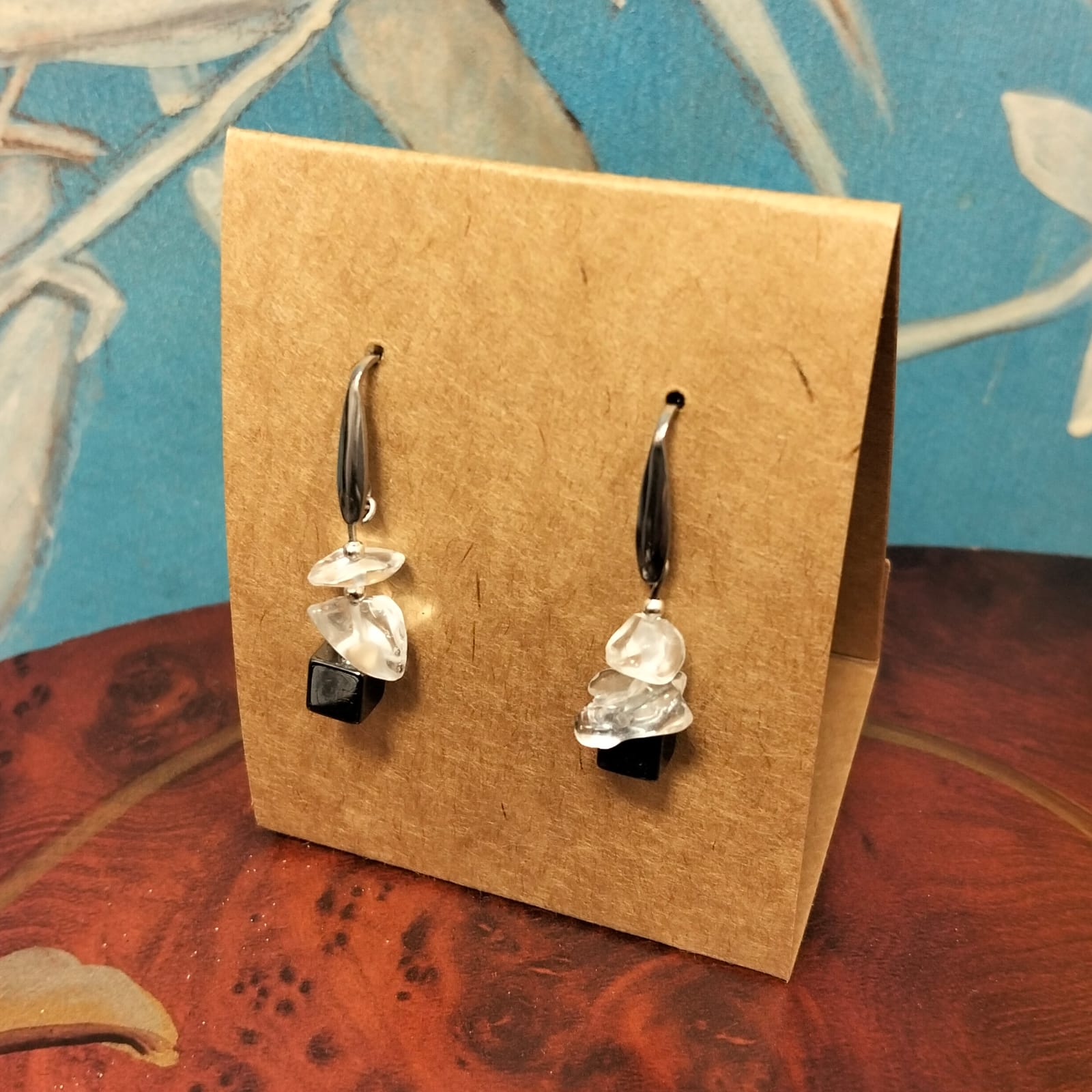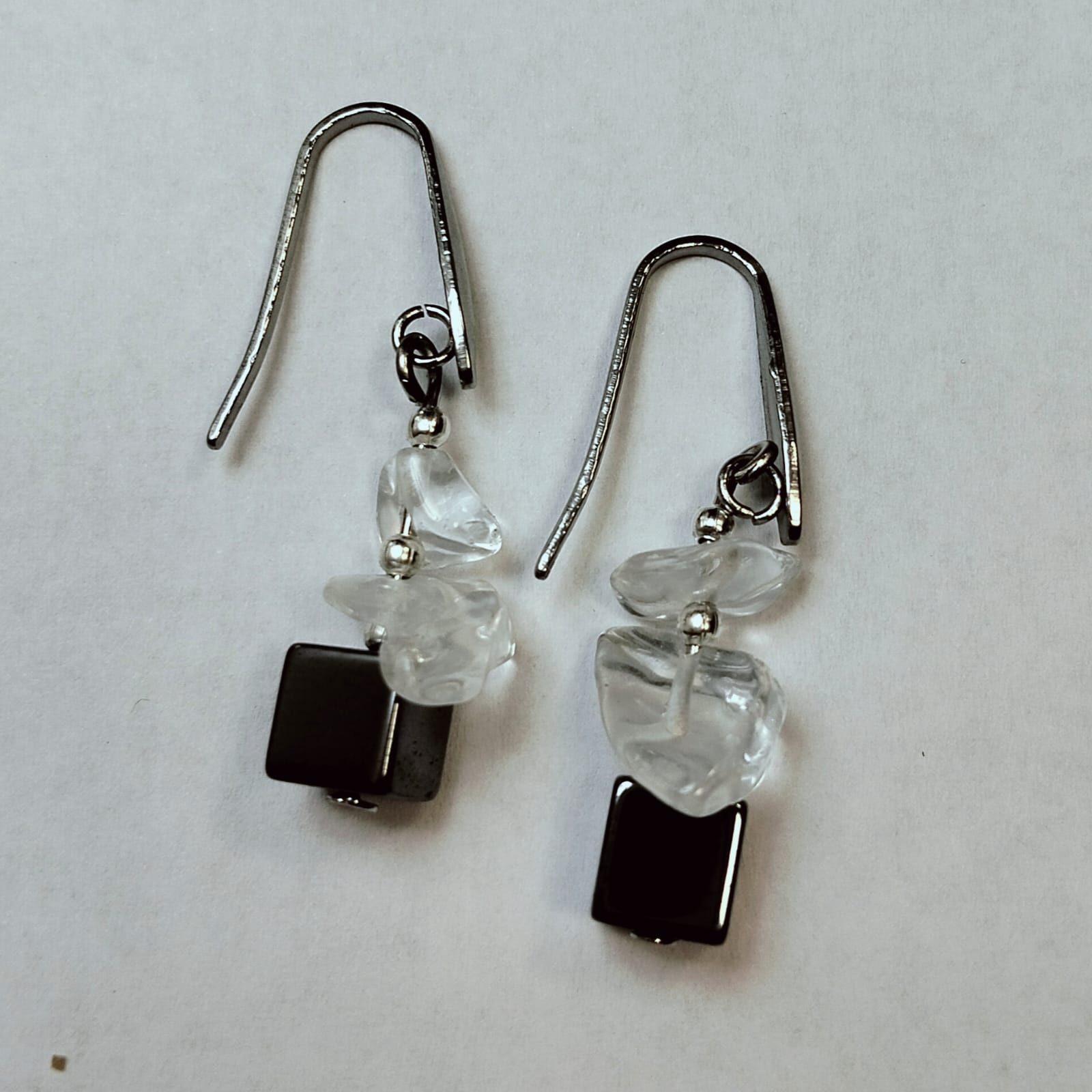 En esta ocasión combinamos la hematita con piedras de distintos colores como coral rojo, jade verde y cuarzo blanco. Montados en un enganche de acero de color plateado. Miden de 3 a 4cm y son muy ligeros, Ideales para llevarlos durante todo el día.