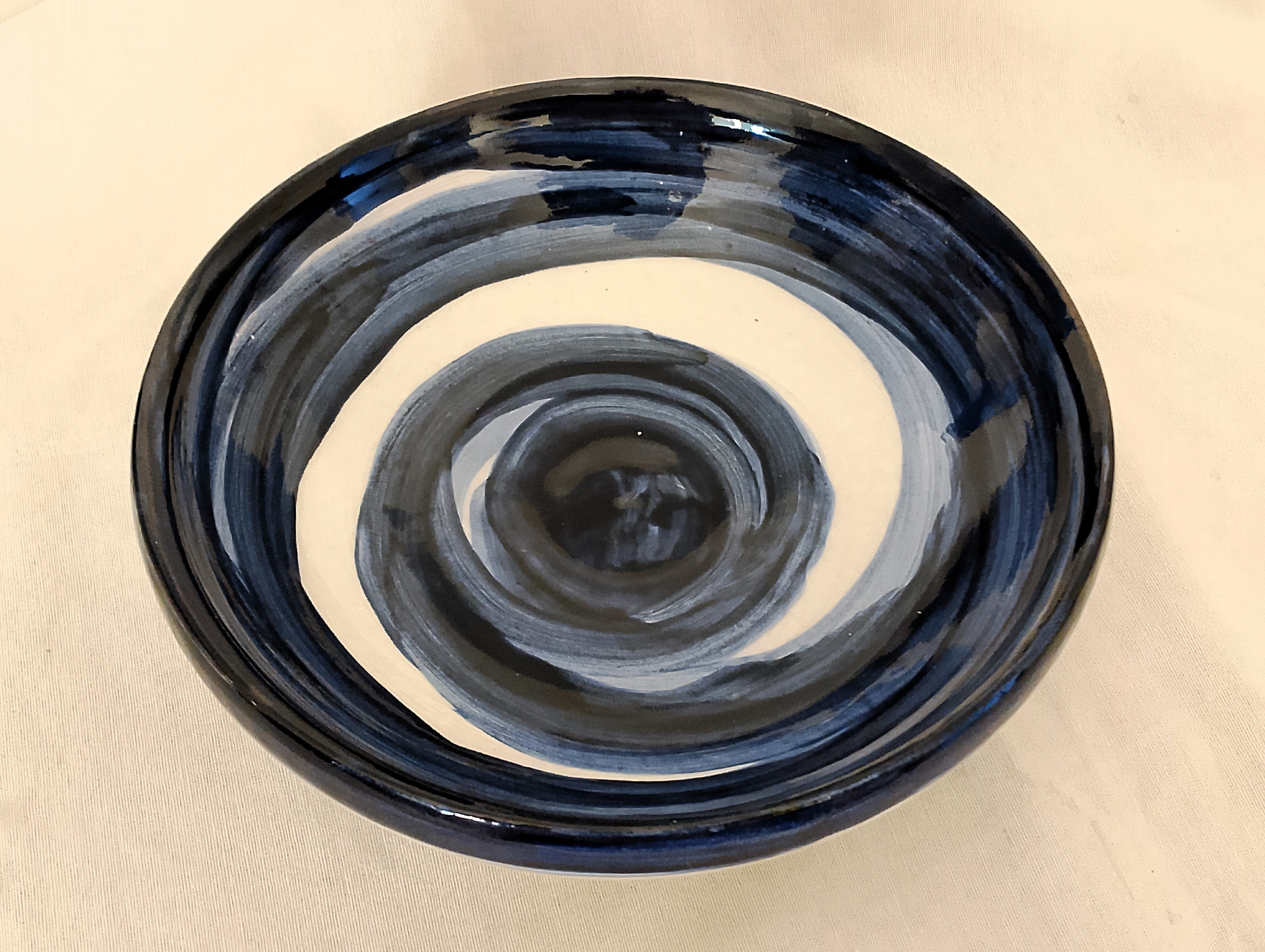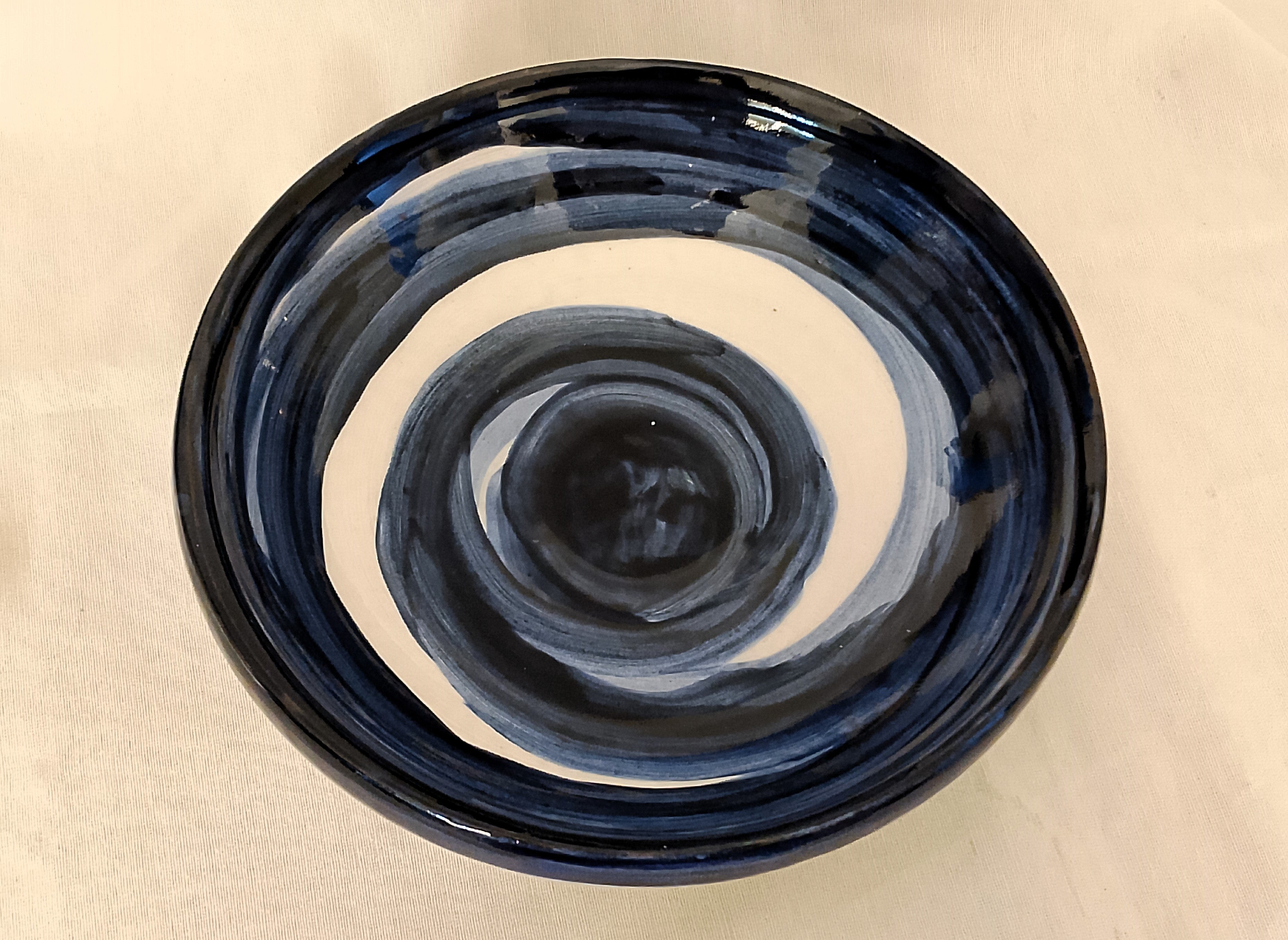 Plato realizado en cerámica, de colres azul y blanco. Múltiples usos como frutero, ensaladera, etc.. Tamaño grande, medidas Ø22X5 cm.